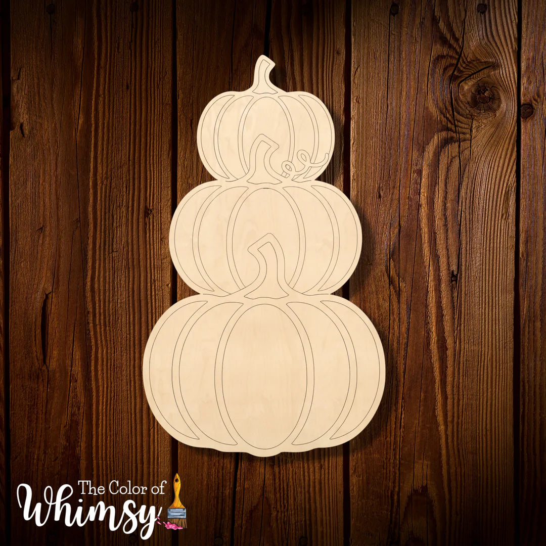 This unfinished stack of pumpkins is laser cut and ready to paint. This wood shape would be great for Paint Parties or is perfect for wreath or sign attachments and personalization.