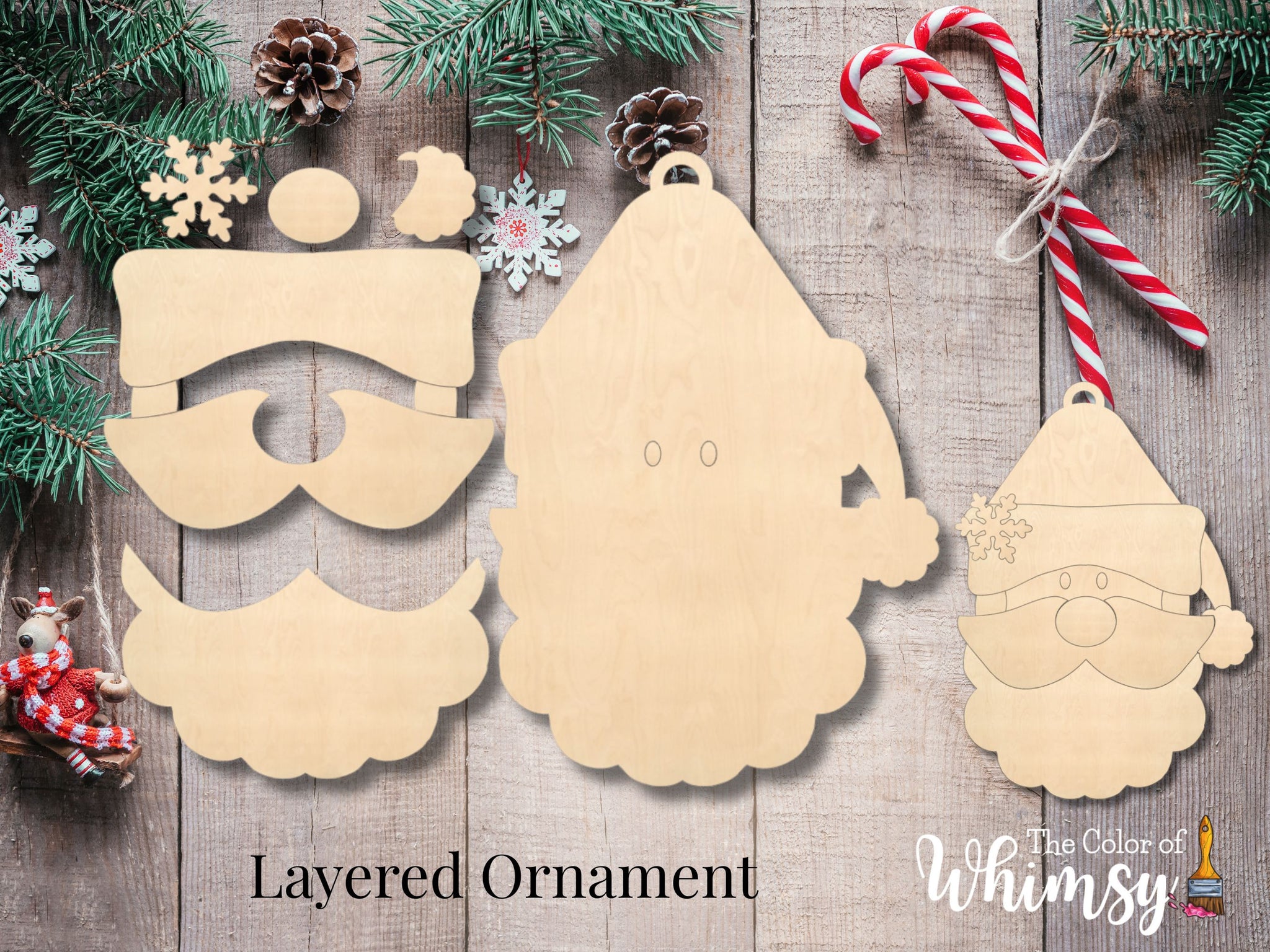 This laser-cut ornament, crafted from 1/4" unfinished wood, is perfect for painting or staining. Standing about 5" tall, it’s ready to become your next festive masterpiece!