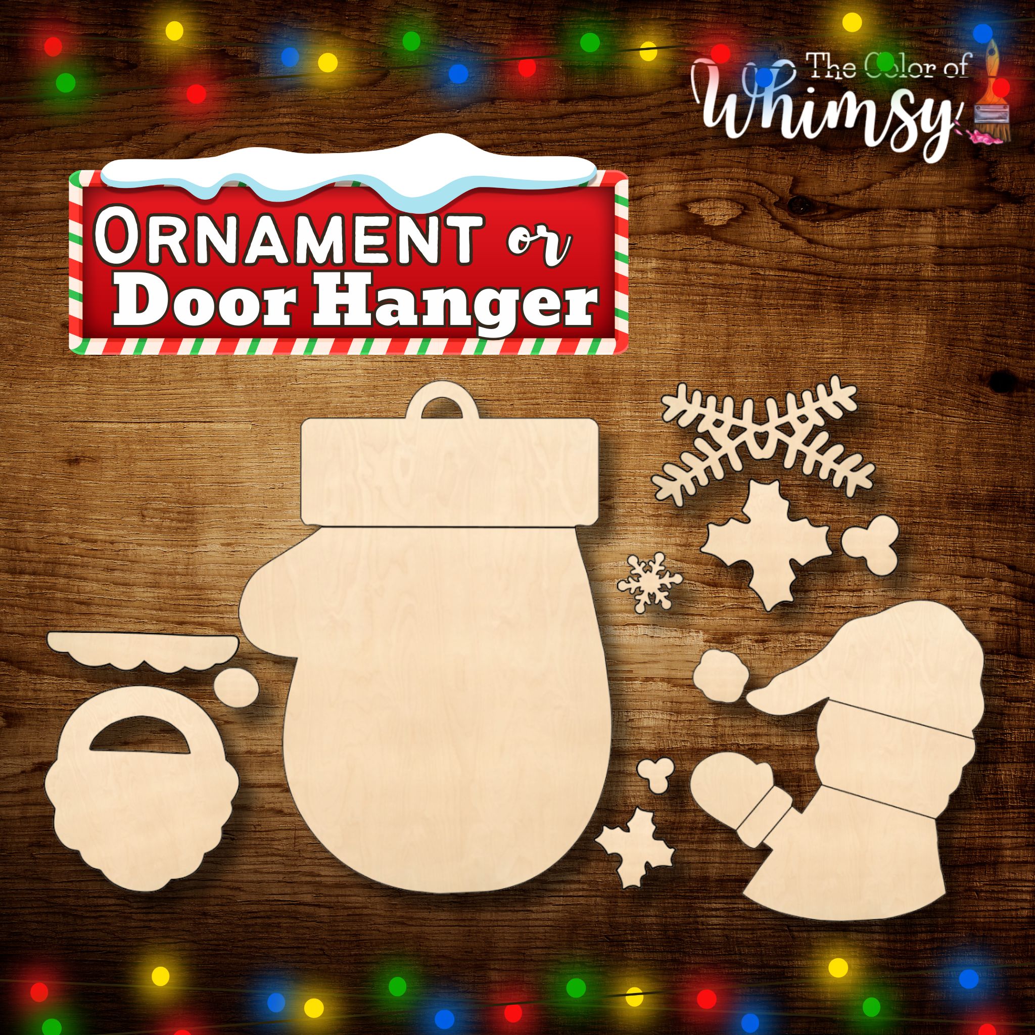 Get ready to deck the halls with this delightful mitten-shaped door hanger! Crafted from 1/4" birch wood and laser-cut to perfection, this festive piece features a cheerful Santa design just waiting for your creative touch. Paint it, personalize it, and hang it proud—the perfect DIY holiday decoration that brings joy and whimsy to any entryway.
