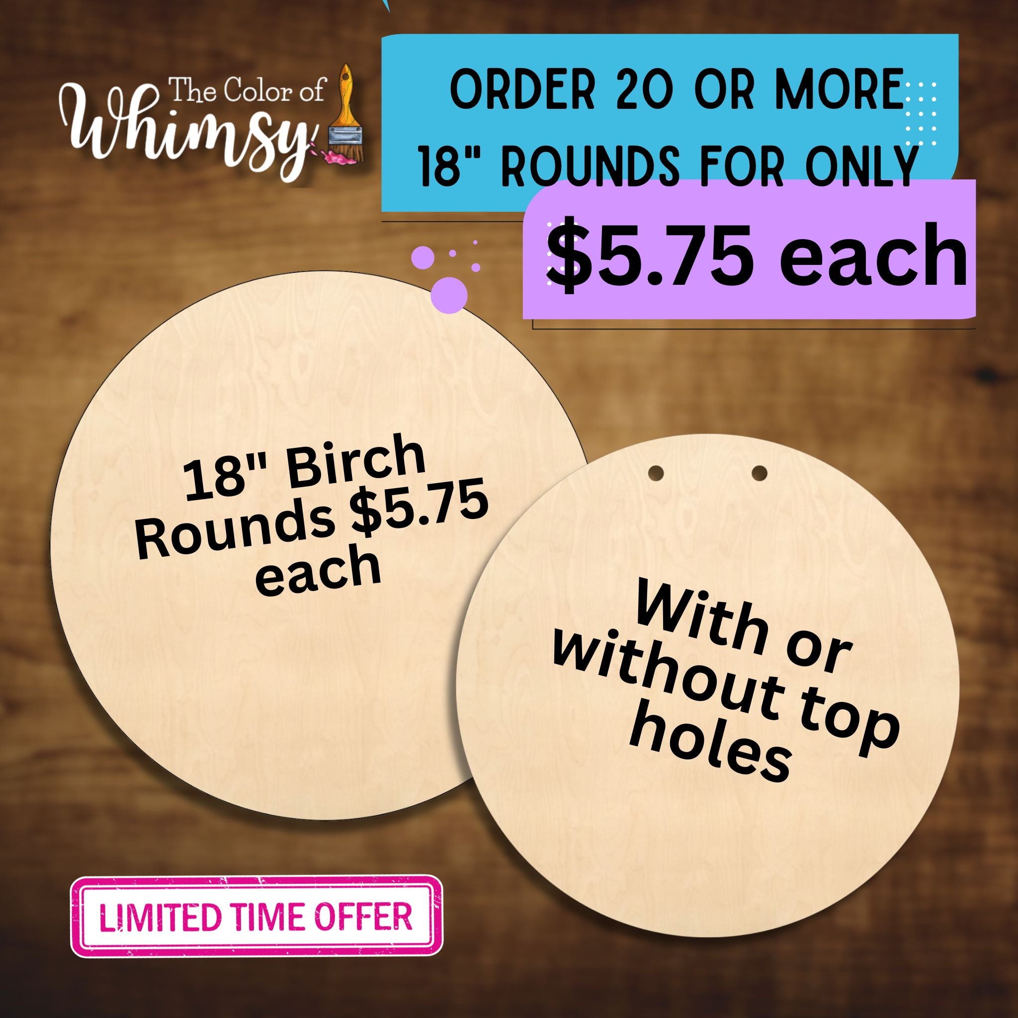 These rounds are 18”. Shapes are laser cut and ready to paint and is perfect for name or nursery signs.